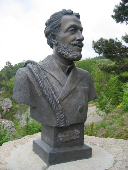 Né à Pontoise le 1er juillet 1859, E.A. Martel fut avocat avant de se consacrer à plein temps à une passion née lorsqu’il était enfant : l’exploration des abîmes. Sa carrière commença dès 1883 sur les Grands Causses, mais c’est le 27 juillet 1888 que Martel et son équipe réalisaient la première traversée intégrale de l’abîme de Bramabiau sur le Causse de Camprien (Gard) qui constituait dès lors, l’acte de naissance de la spéléologie moderne où l’aventure sportive s’alliait à la connaissance scientifique du milieu. Entre 1888 et 1914, Martel effectue 26 campagnes spéléologiques dont l’investigation de Dargillan, la “Grotte Rose” (Lozère), Padirac(Lot), l’Aven Armand (Lozère), le Gouffre Jean-Nouveau et son puits de 167 mètres (Vaucluse), l’Abîme de Rabanel (Hérault), l’exploration du grand puits de Gaping Hill (Grande Bretagne) arrosé sur 110 mètres de verticale! Autant d’exploits réels compte tenu du matériel utilisé à l’époque! D’autres expéditions le menèrent en Belgique, en Asie Mineure, en Irlande, aux Baléares, aux Etats-Unis et au Caucase.